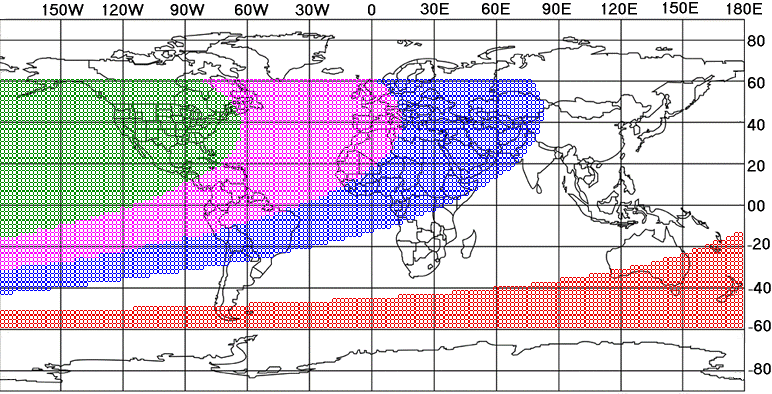 Groen: Goed zichtbaar met het blote oog. Wegens groot tijdsverschil met de oostkust van de Verenigde Staten, is het praktisch lastig om gebruik te maken van bezichtingen uit dit gebied voor 'Ied-al-Fitr, daar de zon in dit gebied onder gaat (en de maansikkel dus zichtbaar is) wanneer het bij ons al na middernacht is.